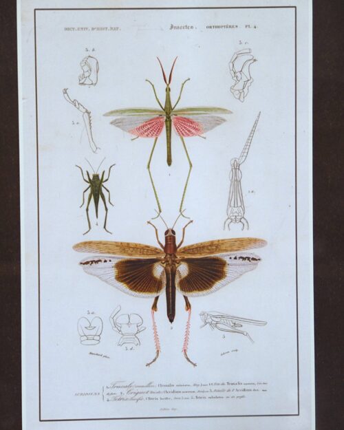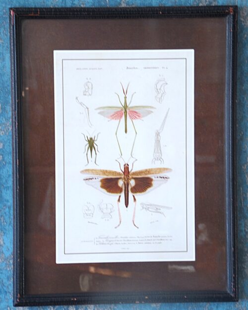 Old framed and glazed print from insects