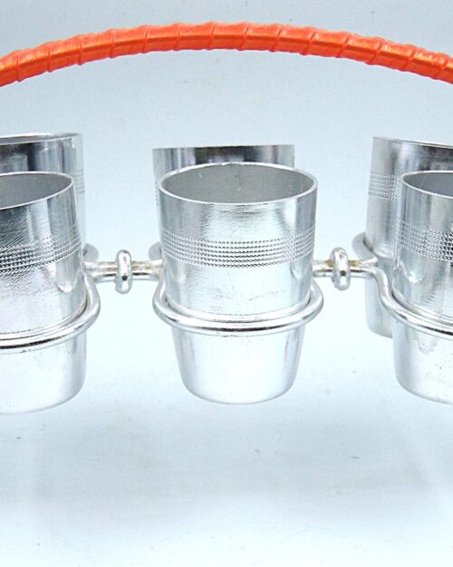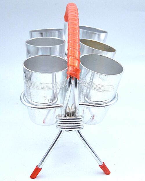 Vintage Souviet Era Shot Rack with 6 Aluminum Shot Glasses