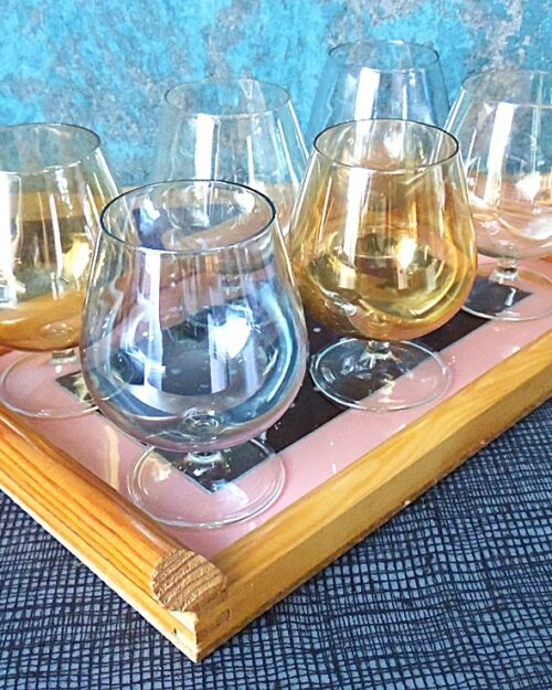 Vintage set of 6 cognac glasses with serving tray