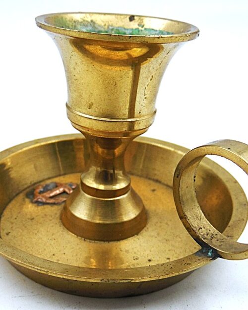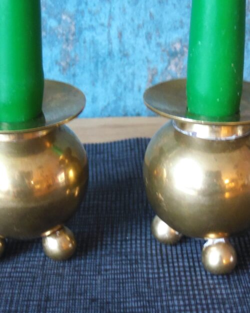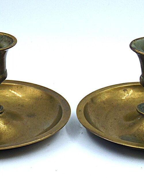 A pair of smaller round vintage copper candlesticks