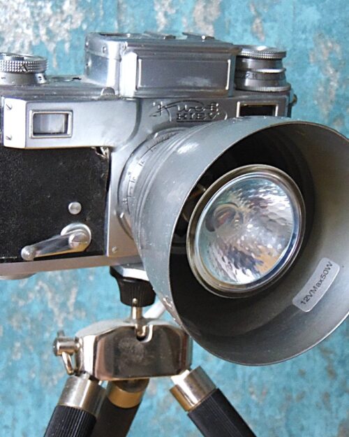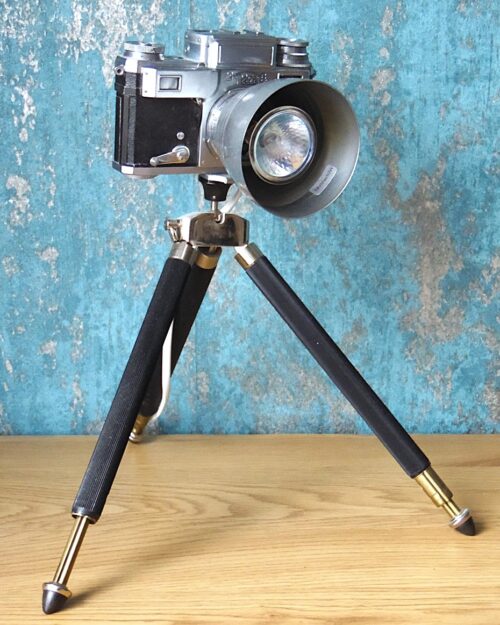 A handmade table lamp made from a vintage Soviet camera from 50’s