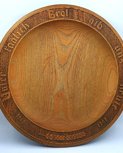 Old wooden plate bowl ’’ Our daily bread give us today Kharkov 1943 ’’ from World War II