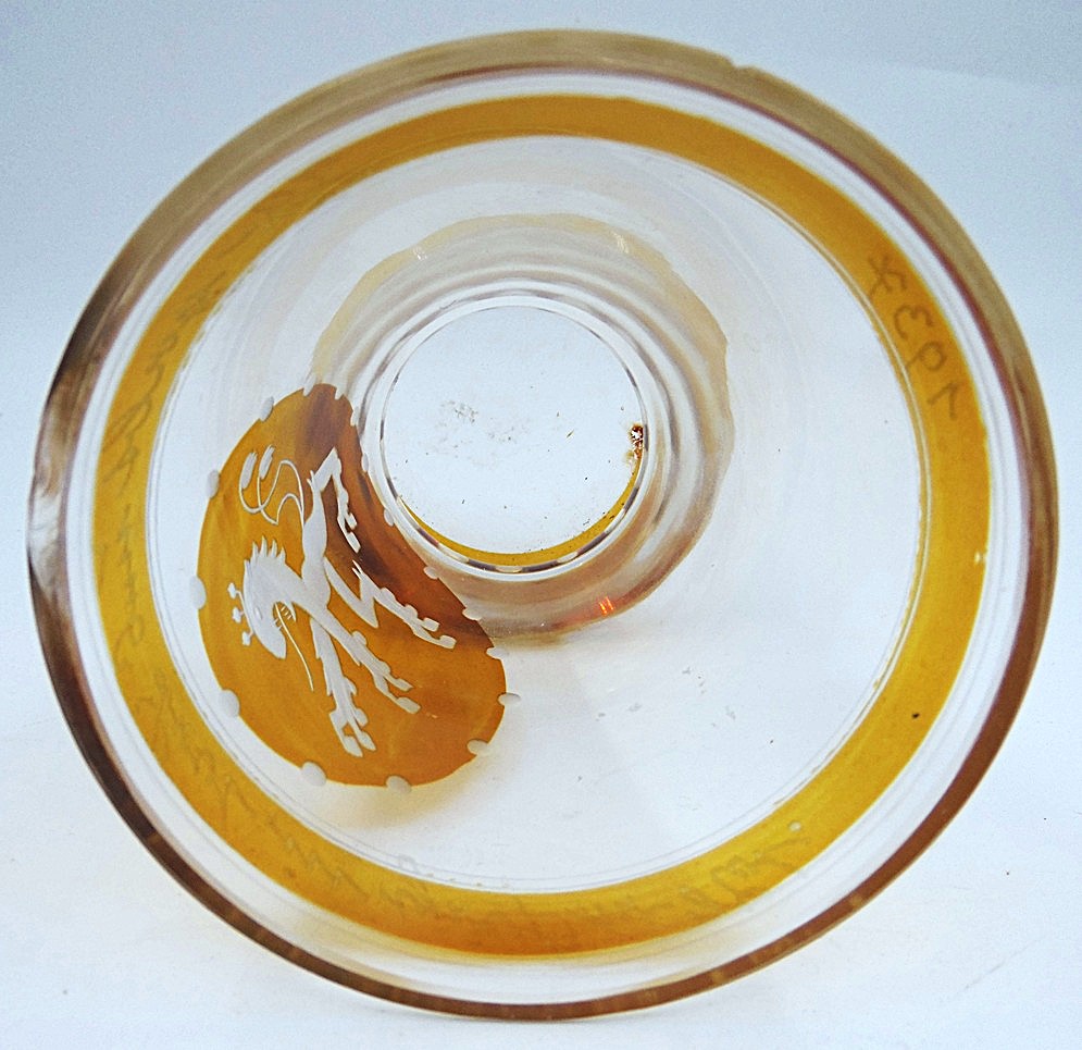 3. reichi aegne klaasist korjanduspokaal Sudeedimaa elanikele, aastast 1937, kaunistatud Böhmi lõviga, valmistaja “GL Stein-Schönau” (praegune Kamenicky Senov Tšehhi Vabariik), mõõdud kõrgus 11 cm, läbi mõõt ülevalt 8,5 cm, ülemisest servast 2 väikest kildu väljas, muidu heas säilivuses, originaal;