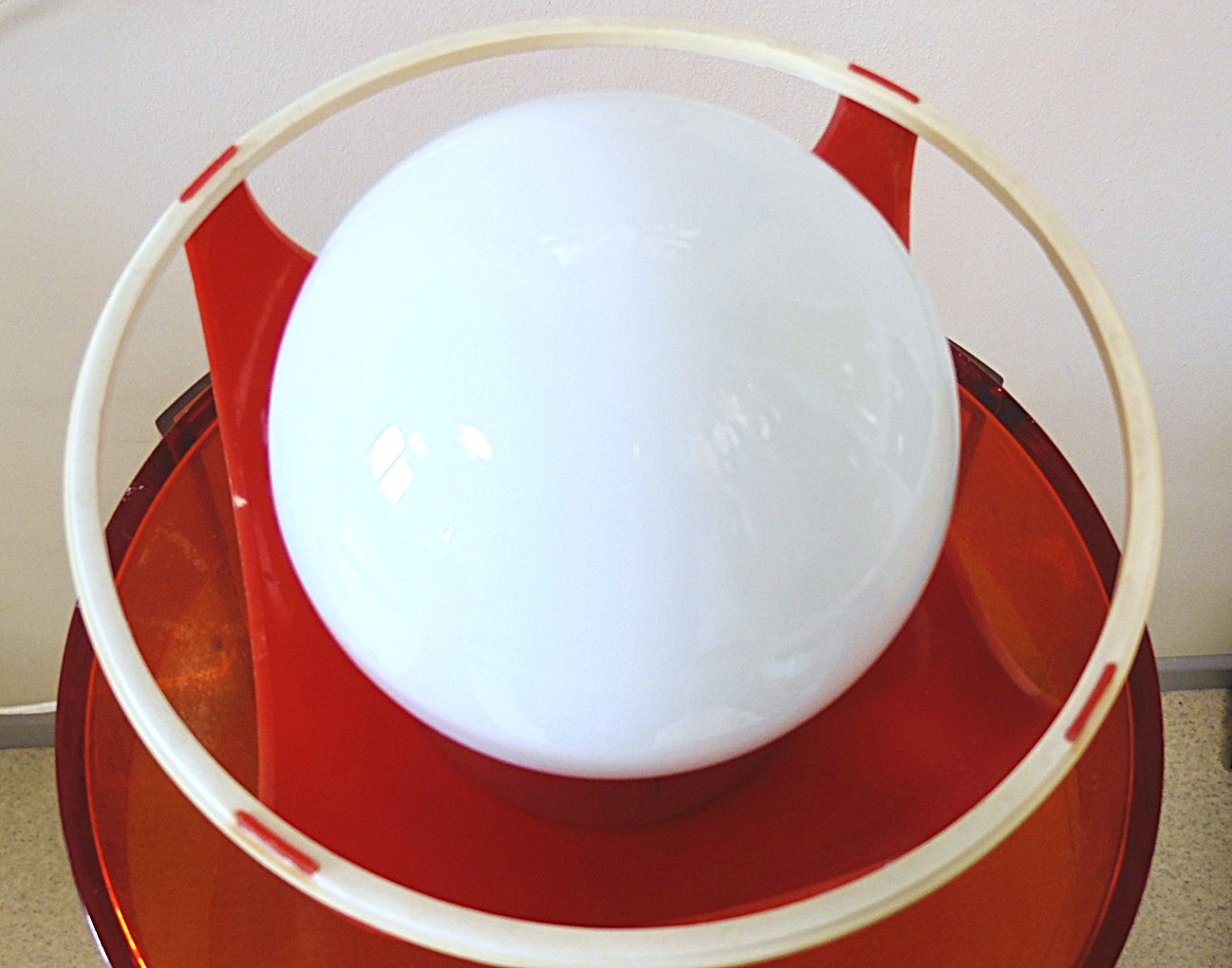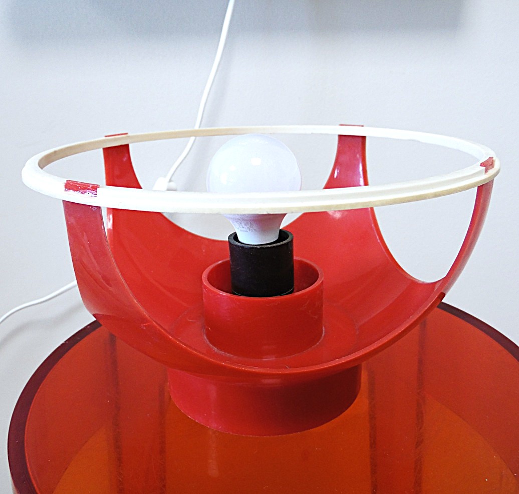 Ikooniline Estoplasti ‘’Mummu’’ öölamp, värvus punane, disaininud Laine Linnas, valmistatud Nõukogude liidus 1980’el aastatel, valmistatud tehases Estoplast, mõõdud: kõrgus 21,5 cm, deameeter 20,5 cm, töötab ideaalselt minimaalsete kasutus jälgedega;
