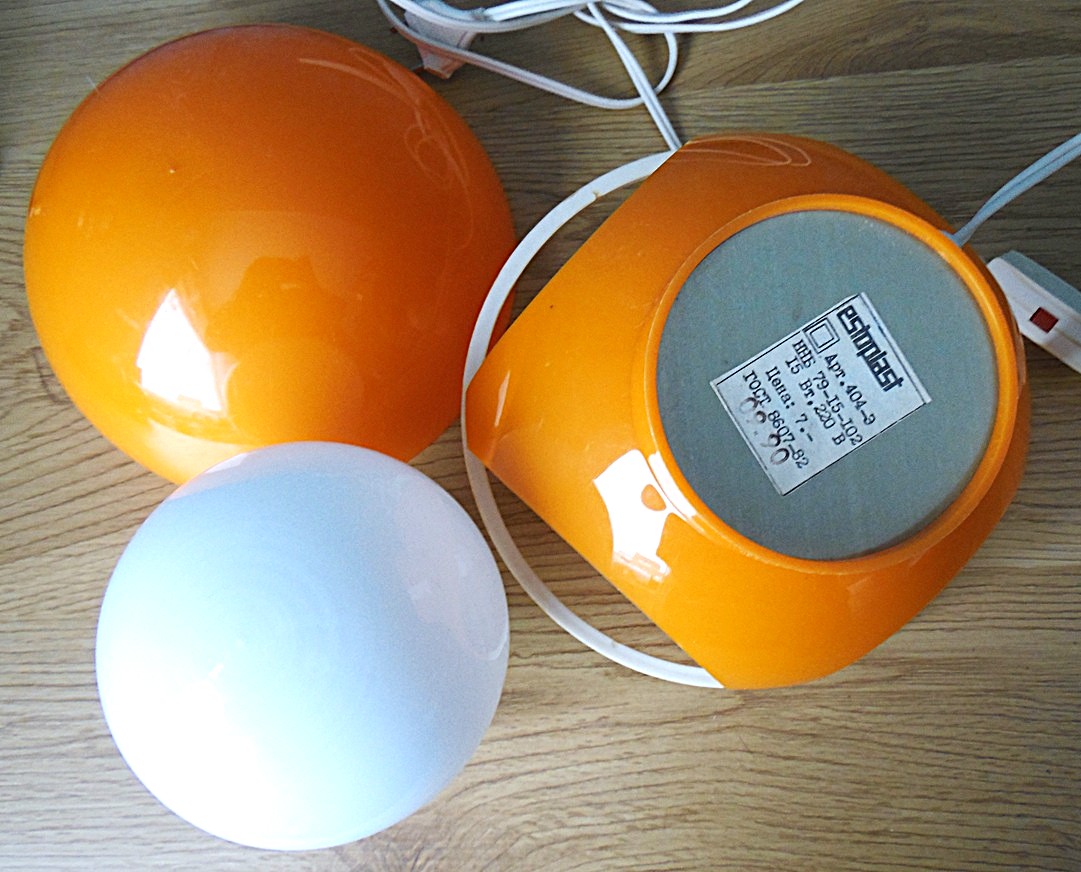 Iconic Estoplast Yellow ‘’Mummu’’ Night Lamp, Designed by Laine Linnas, made in Soviet Union in the 80’s, it was made in the Estoplast lamp factory, color Orange, dimensions: height 21,5 cm, diameter 20,5 cm. Works perfectly, with minimum signs of previous use;