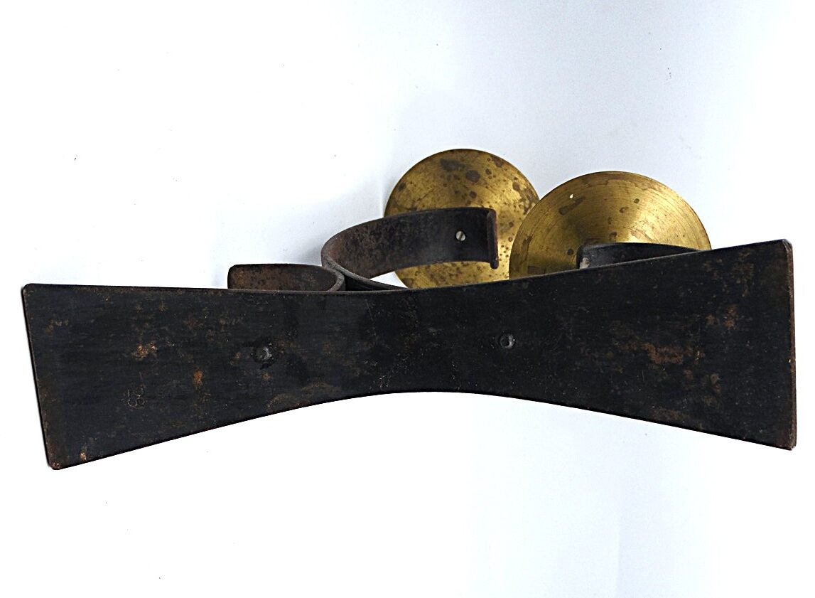 Vintage brutalistlikus stiilis küünlajalg kahele küünlale, 60’st aastatest, valmistatud vasest ja metallist, pikkus 22,6 cm, laius 7,6 cm, kõrgus 23,6 cm;