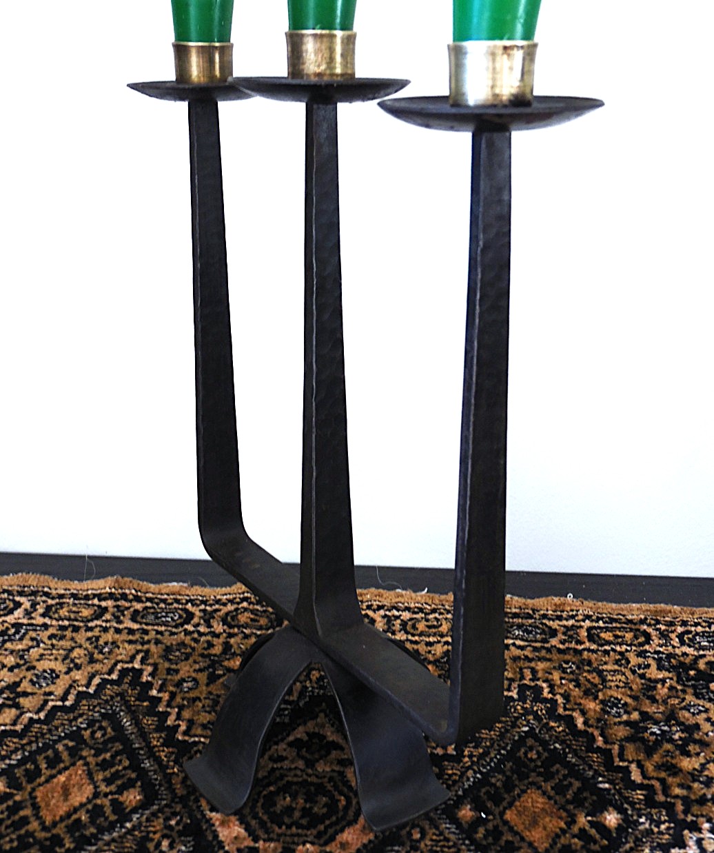 Vintage brutalistlikus stiilis küünlajalg 3’le küünlale, 70’st aastatest, valmistatud metallist, pikkus 22,6 cm, laius 11,5 cm, kõrgus 26,4 cm; Küünlad pole müügi osa ja ei tule ostuga kaasa!