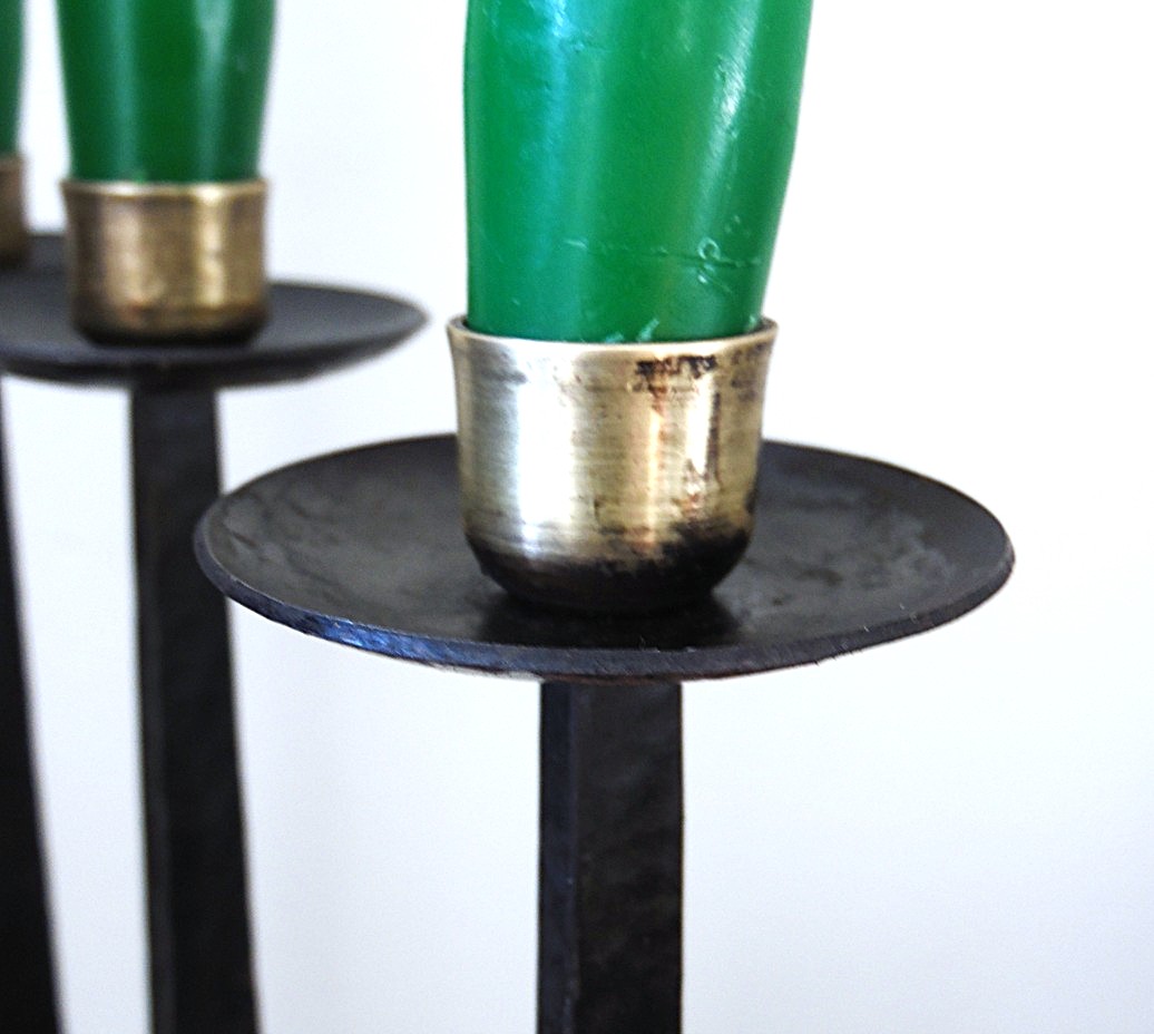 Mid Century Vintage Brutalist Style Candleholder for 3 candles, from 70’s, made from metal, length 22,6 cm, width 11,5 cm, height 26,4 cm; The candles are not the part of the purchase and do not come with the purchase!