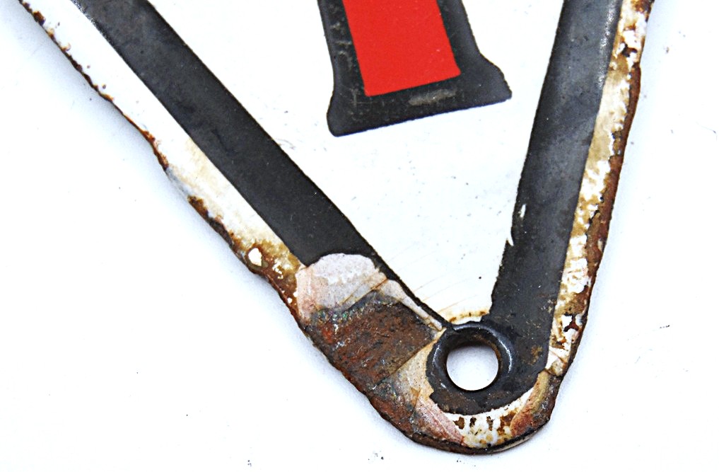 Old German advertising sign from 30 years, with enamel damage, size 162 x 161 mm, otherwise in good condition, original;