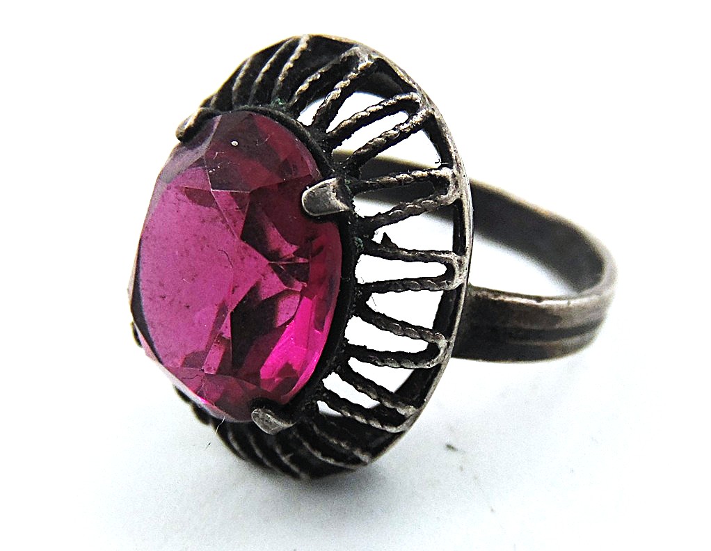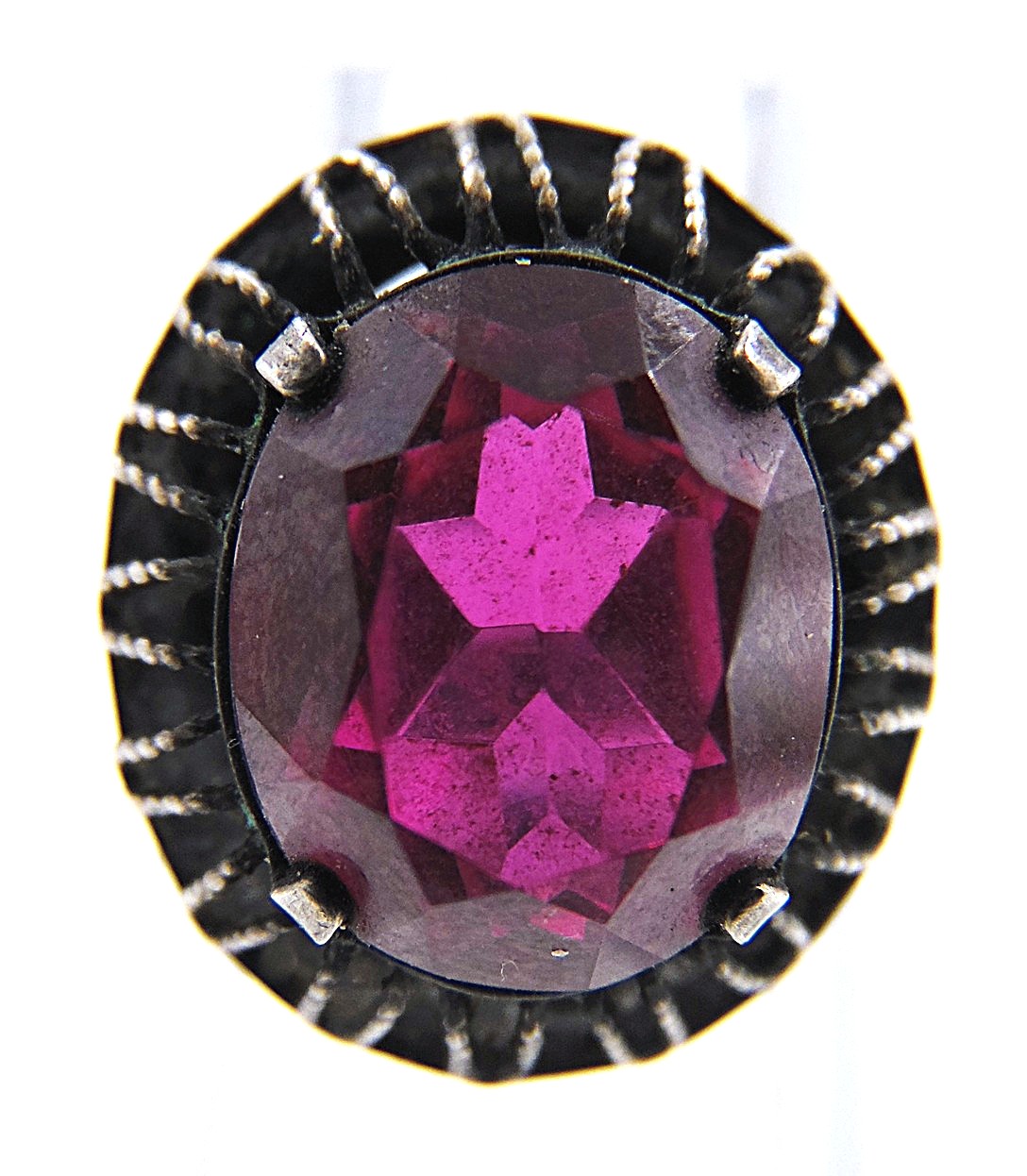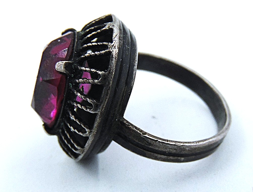 Old Vintage silver ring with purple stone, made in the 1950’s, Soviet silver hallmark 875 on the ring, size 17;