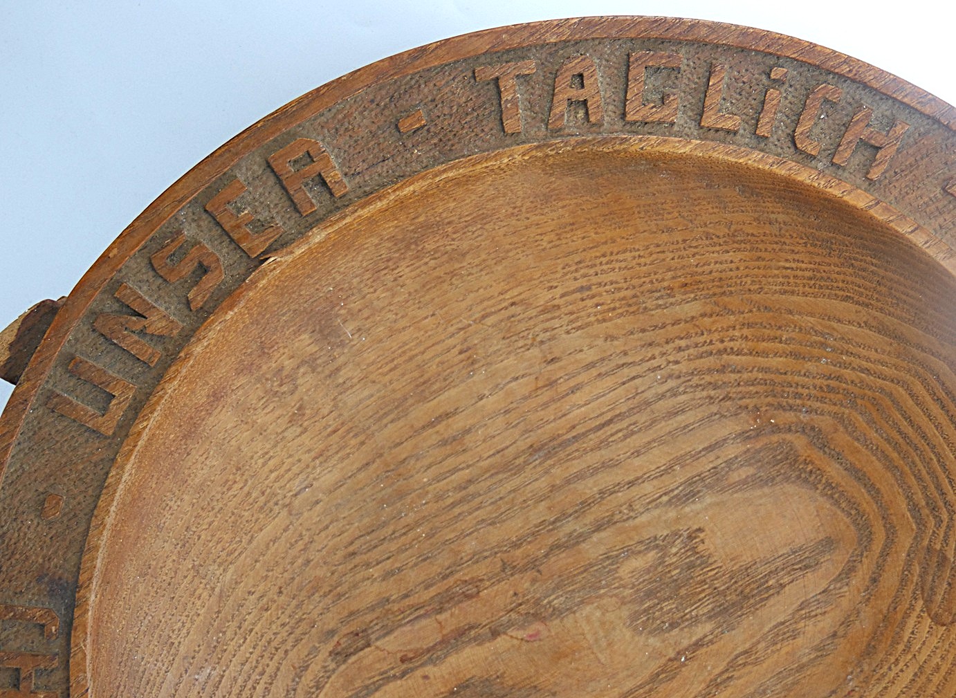 Old wooden plate bowl ’’ Our daily bread give us today Kharkov 1943 ’’ from World War II