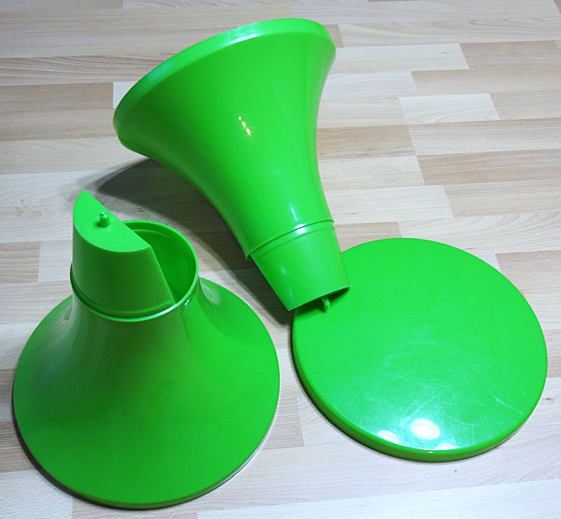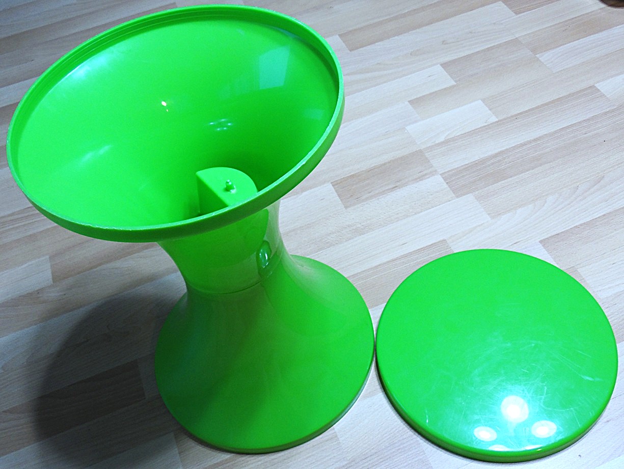 Originaalne 1970’ndate vintage taburet, TAM-TAM või DIABOLO stiilis, valmistatud plastikust, märgistatud “Made in France – Registered Design” TAM-TAM, värvus – õunaroheline, heas seisukorras, mõõdud: läbimõõt: 30 cm kõrgus: 45 cm;