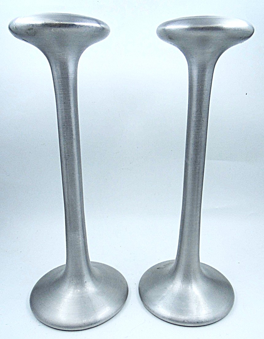 Paar vintage 1990ndate Ikea “Kägla” metallist küünlajalgu, disain Carl Öjerstam, valmistatud harjatud alumiiniumist, kõrgus 25 cm;