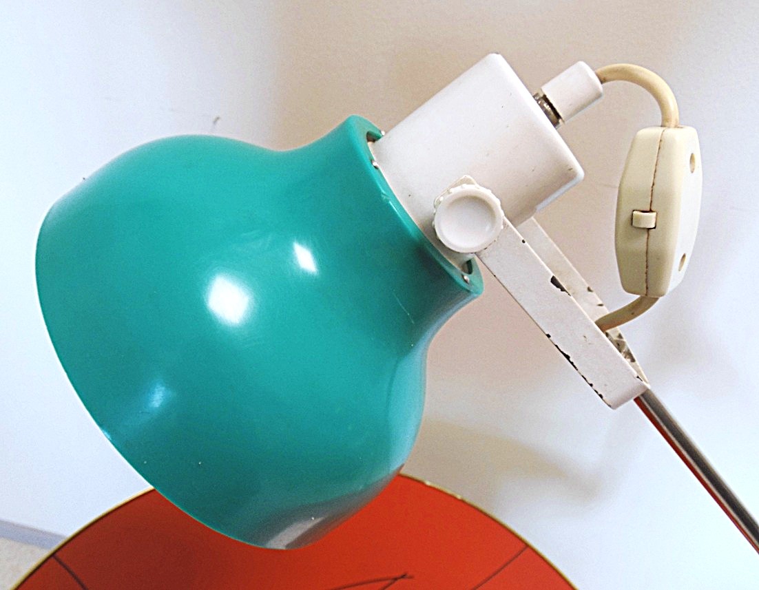 Haruldane vintage Nõukogude aegne töölaua / insenerilamp, valmistatud 1970’el aastatel Nõukogude Liidus, valmistaja “Estoplast”, võimalik kinnitada nii vertikaalsele kui horisontaalsele pinnale, maksimaalne lambi kõrgus 70 cm, lamp on töökorras kuid esineb vanusest ja eelnevast kasutusest tulenevaid jälgi;