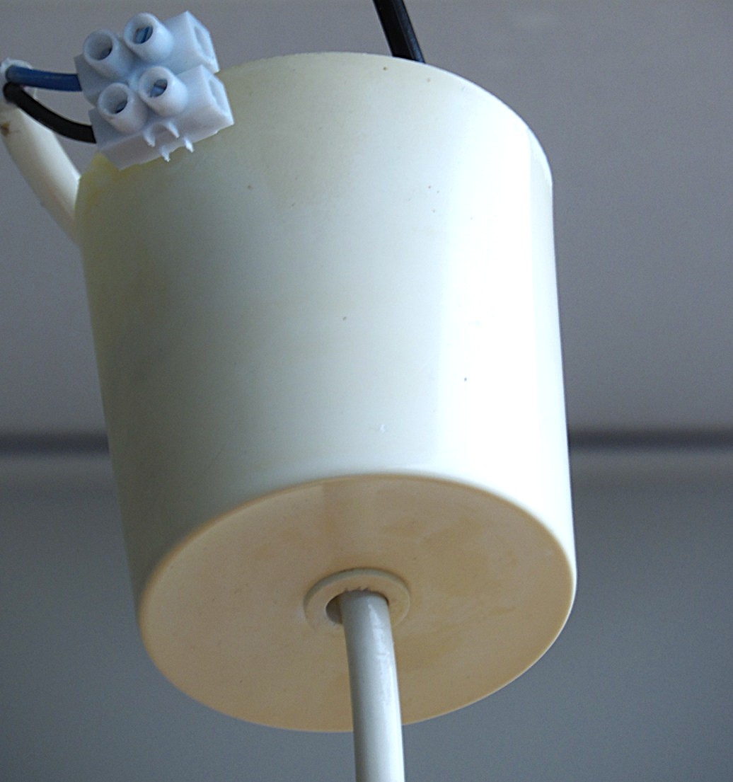 Scandinavian Mid-Century Ceiling Light, made in the 1970’s, made in Finland, Refreshing ceiling light on a flower shaped plastic shade and cupola from opaline glass, Dimensions: Height: cm, Diameter: 45 cm, the lamp is fully working and in excellent vintage condition;