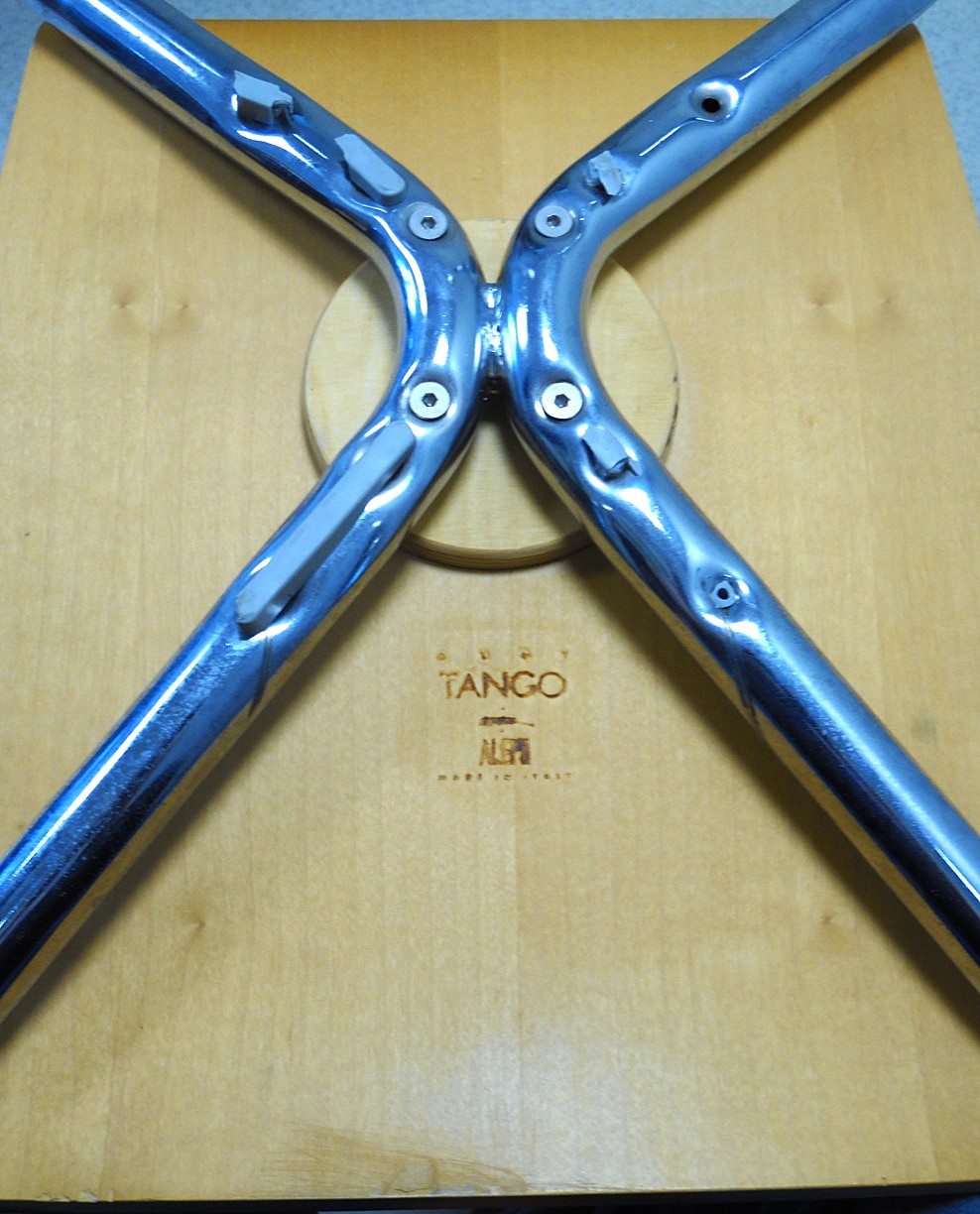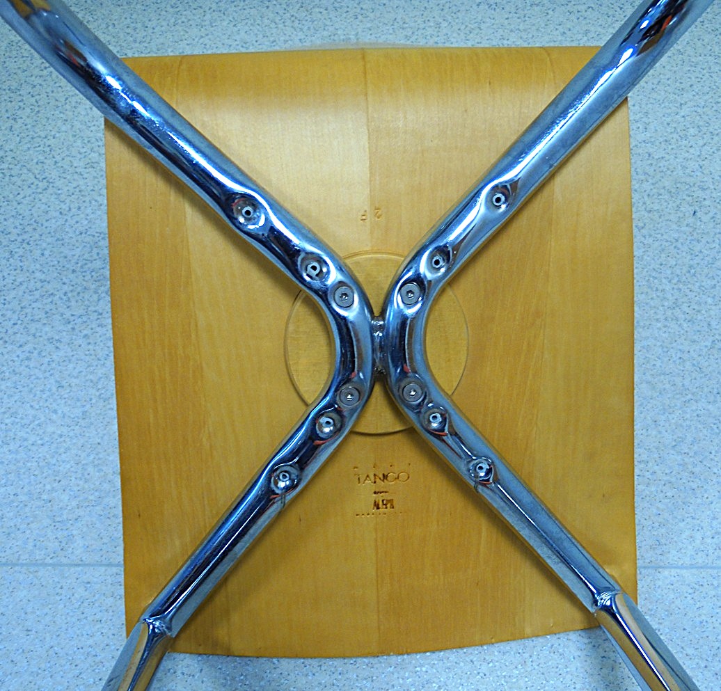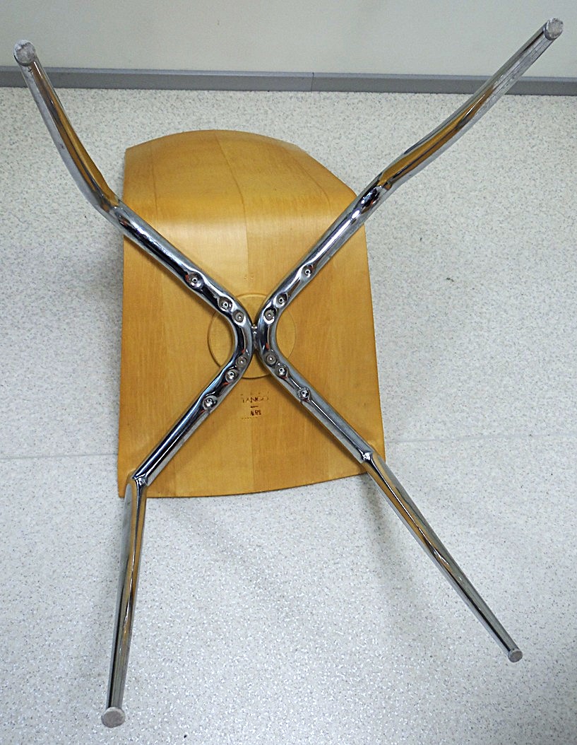 Komplekt 2 Olly Tango tooli 1980’st aastatest, disain Philippe Starck, tootja Driade Aleph, valmistatud Itaalias. Elegantne minimalistlik postmodernistlik disain, iste on valmistatud paksust vormitud vineerist, orgaaniliselt vormitud metalljalad on kroomitud. Mõõtmed: kõrgus: 89.54 cm, laius: 40.64 cm, sügavus: 55.88 cm, istme kõrgus: 46.36 cm, esineb vanuse ja kasutamise märke;
