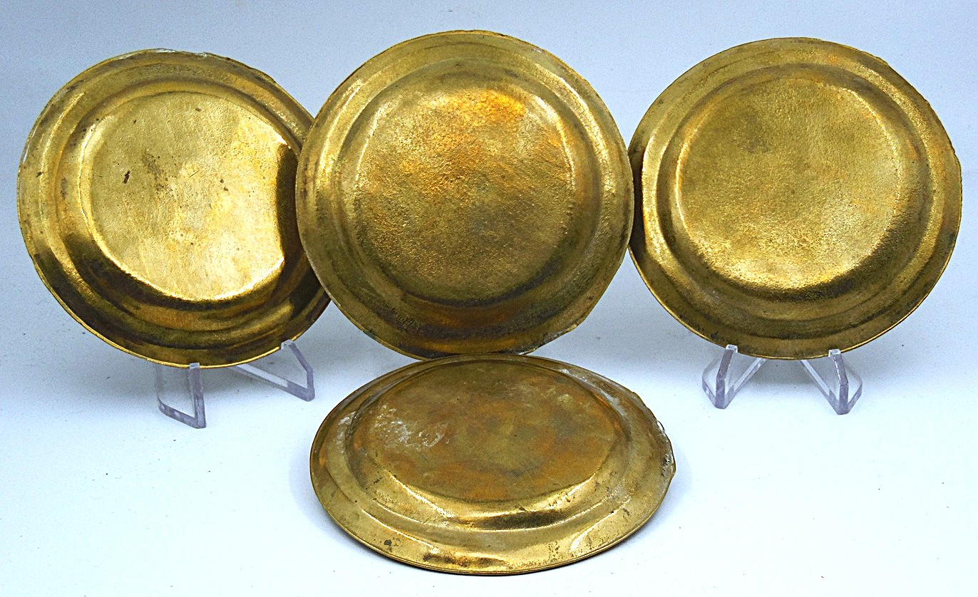 Set of four Vintage Turkish tea serving small bronze saucers, diameter 10,8 cm, height 1,3 cm;
