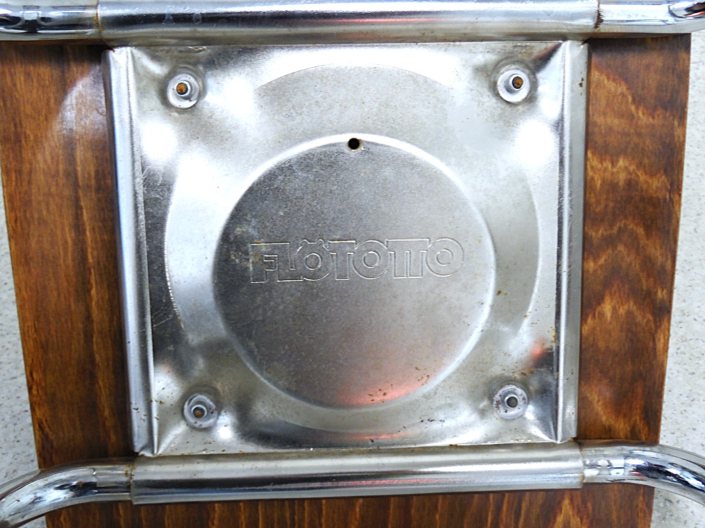 Komplekt kahest bauhaus stiilis Flötotto vintage lastetoolist, valmistatud 1970’el aastatel Lääne Saksamaal, iste on valmistatud paksust vormitud vineerist, orgaaniliselt vormitud metalljalad on kroomitud, vineerosa tiigipuu värvi, mõõdud: kõrgus 60 cm, laius 43 cm, sügavus 40 cm, istumiskõrgus 33 cm, heas seisukorras, kuid esineb vanusest ja kasutusest tulenevaid jälgi;