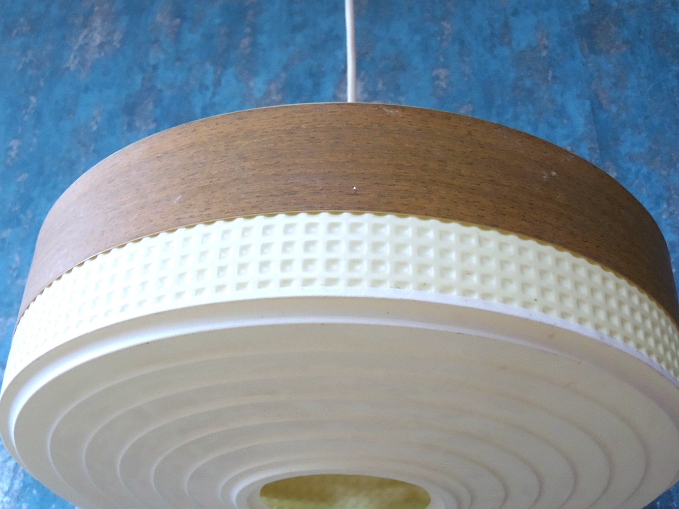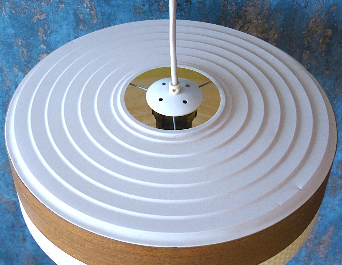 Lihtsas Skandinaavia stiilis kosmoseajastu laelamp, valmistatud 1950’el / 60’el aastatel Taanis, valmistatud plastikust, mõõdud: kõrgus 15 cm, läbimõõt 39 cm. Töötab ideaalselt, oma vanuse kohta minimaalsete kasutus ja kulumis jälgedega;