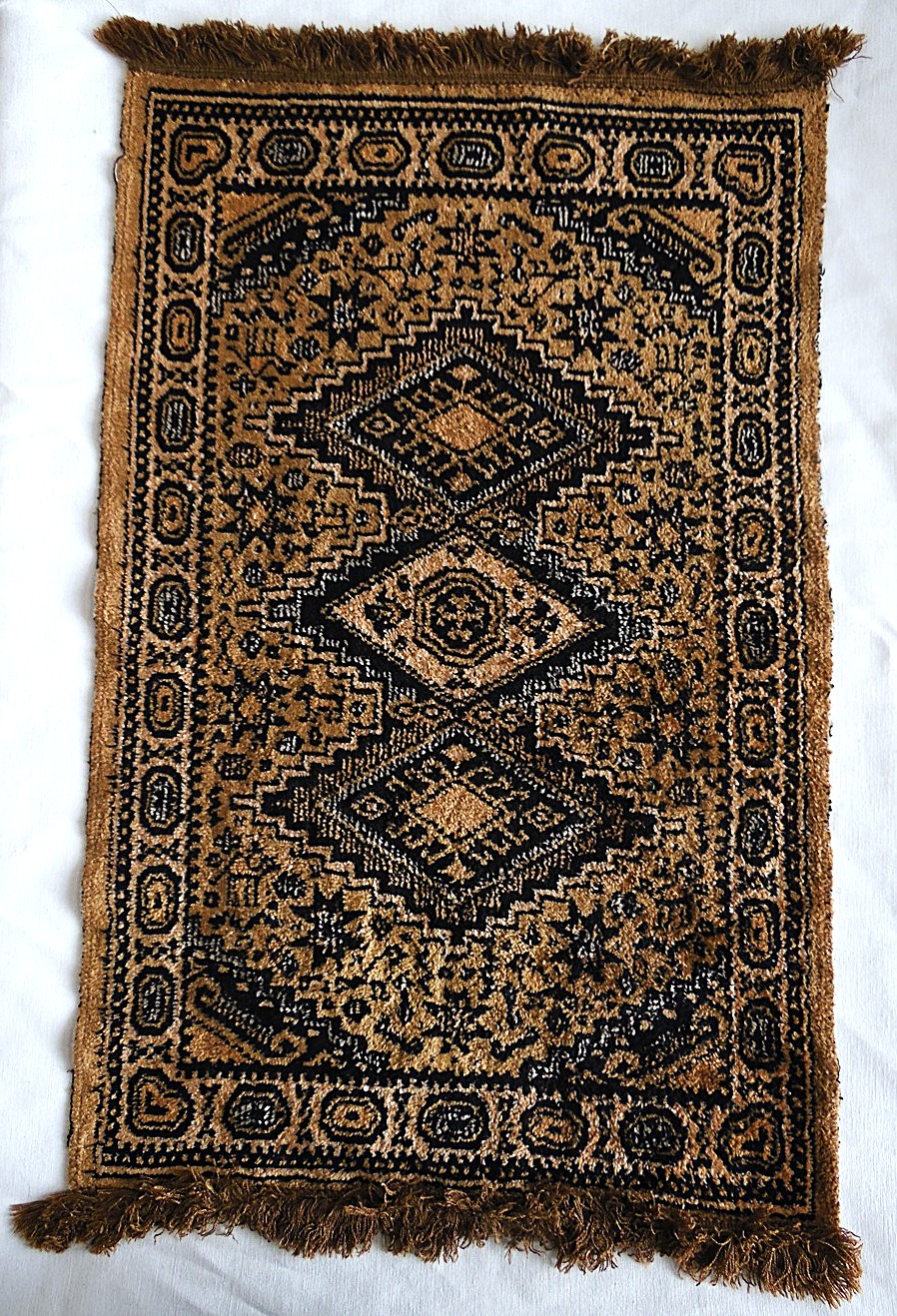 Small oriental style silk rug/veil, made in Turkey, dimensions 55 x 32.5 cm, used but still in good condition;