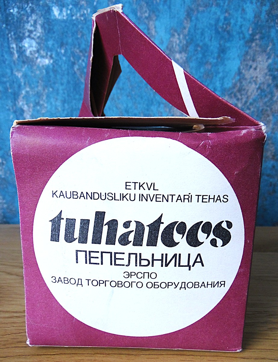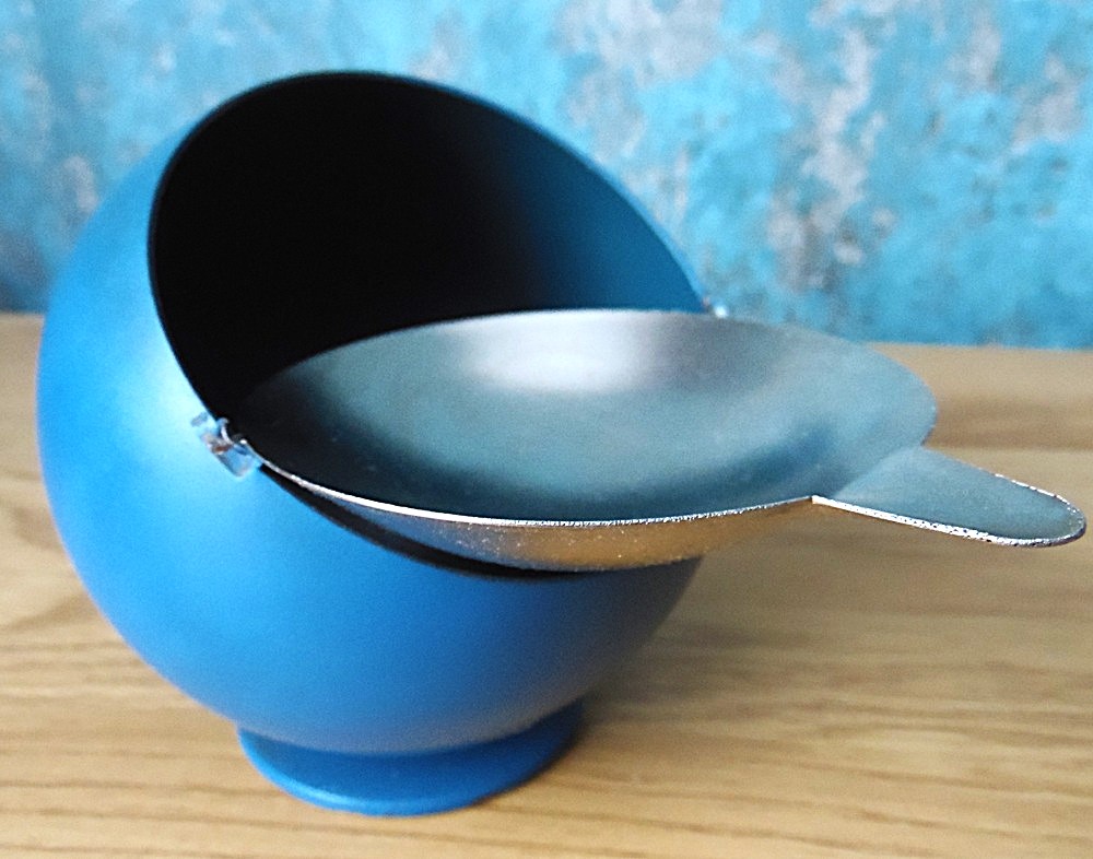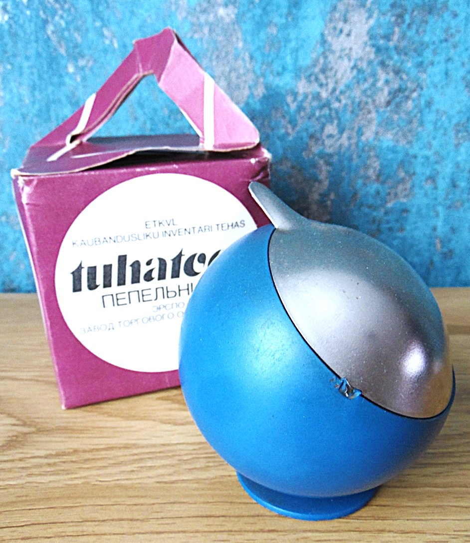 Vinage Space Age ashtray, made in Soviet Union in the 70’s in ETKVL’s Commercial Inventory Factory, in original box, color blue, made from metal, unused;