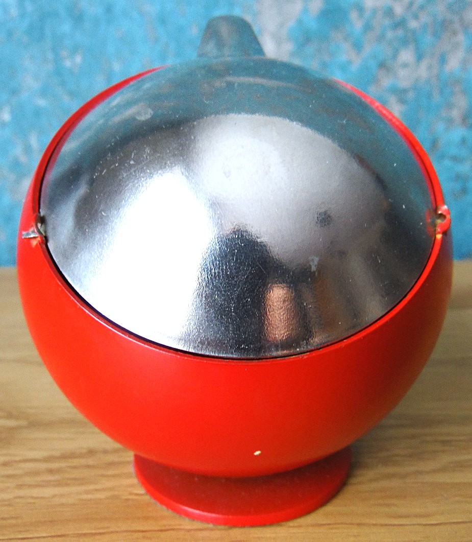 Vinage Space Age ashtray, made in Soviet Union in the 70’s in ETKVL’s Commercial Inventory Factory, color red, made from metal, unused but a little rusty inside;