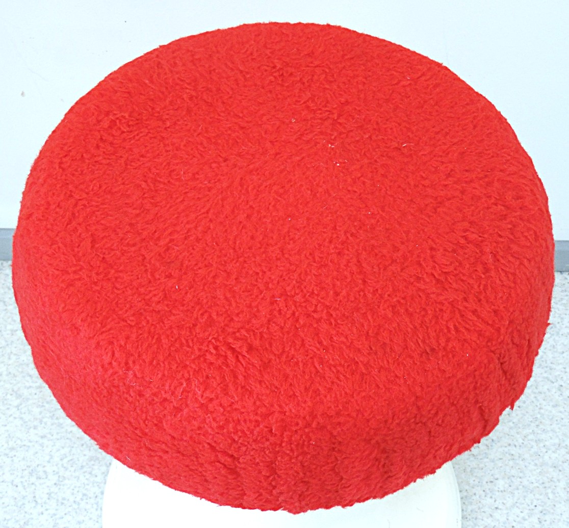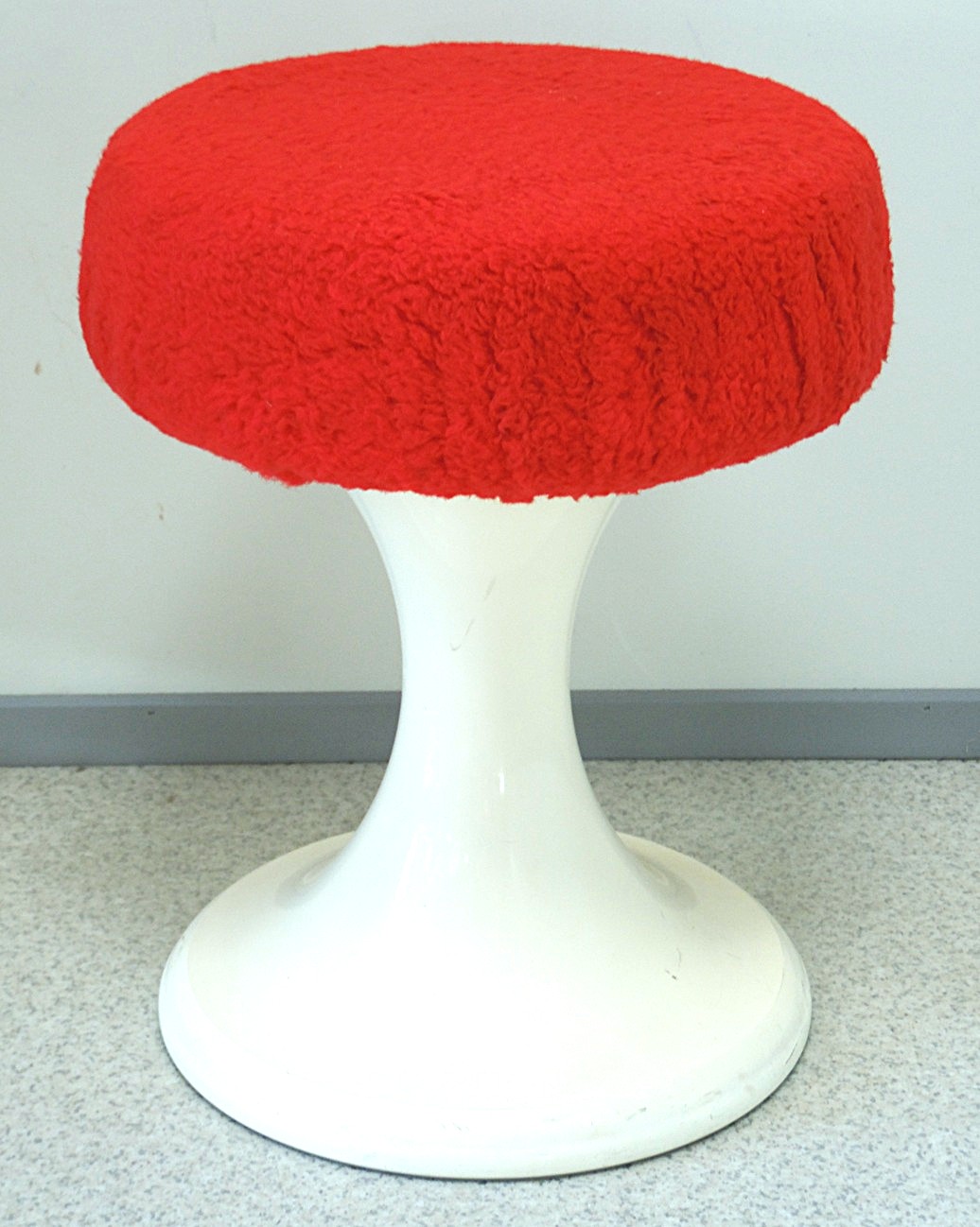 Vintage Emsa plastic stool from the 1970’s, made in EMSA factory in West Germany, with red plush cover, dimensions: height 44,5 cm, seat width 33 cm, in good vintage condition but there are signs of previous use and age;