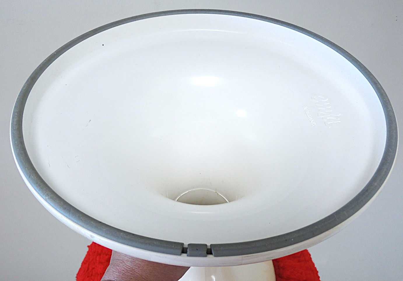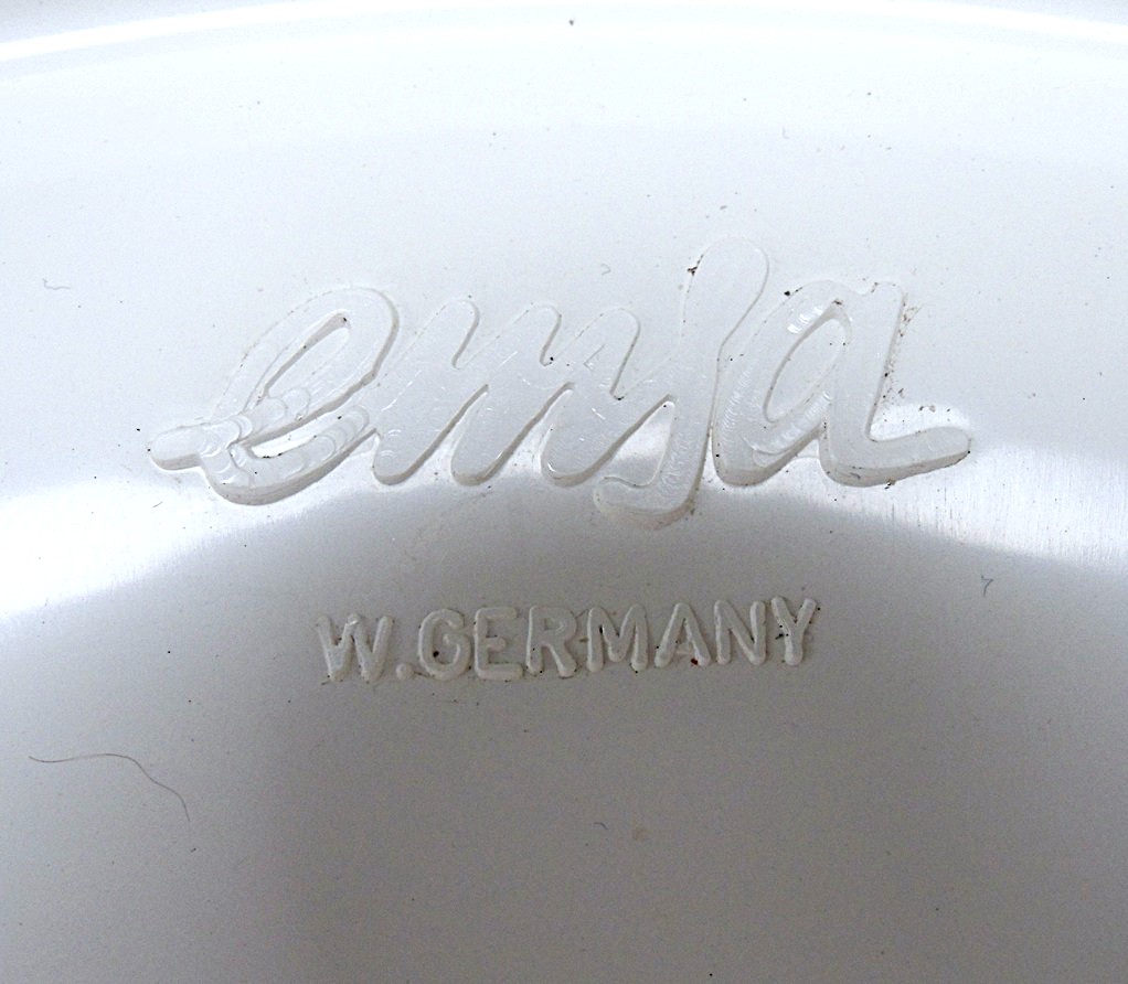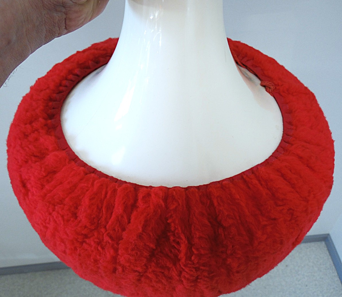 Vintage EMSA plastist tumba, valmistatud 1970’el aastatel EMSA tehases Lääne Saksamaal, kaetud punase plüüs kattega, mõõdud: hõrgus 44,5 cm, läbimõõt 33 cm, heas vintage seisukorras, kuid esineb varasemast kasutamisest ja vanusest tulenevaid jälgi;