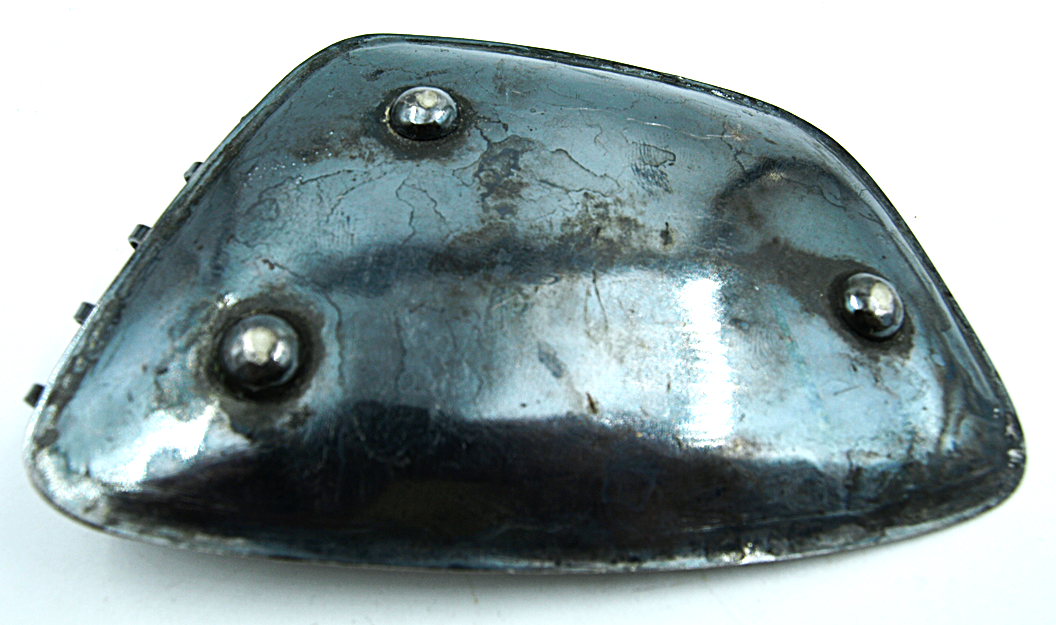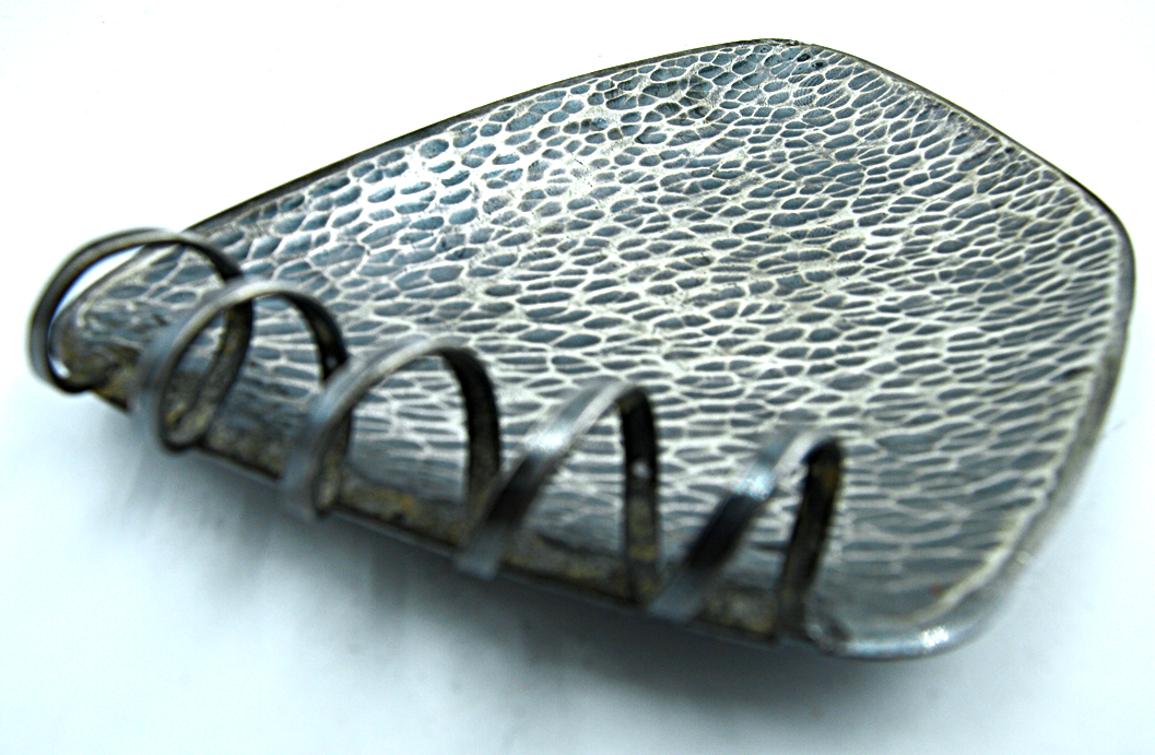 Vintage stiilis haamriga töödeldud hõbetatud metallist tuhatoos, pikkus 12,8 cm, laius 8,3 cm, kõrgus 2,4 cm;