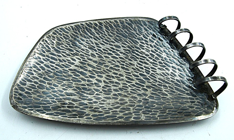 Vintage Mid Century Hammered Silver Plated Metal Ashtray, length 12,8 cm, width 8,3 cm, height 2,4 cm;
