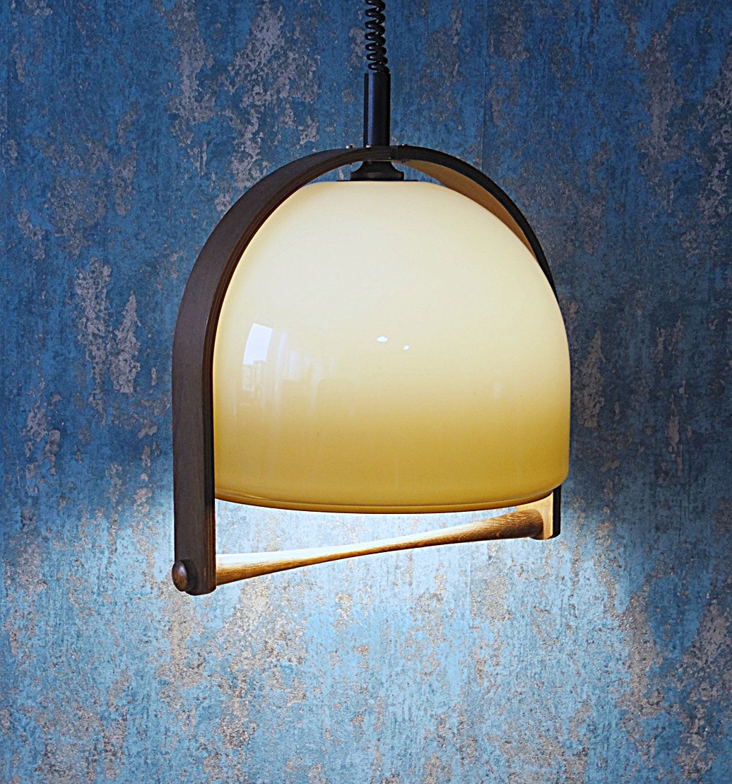 Vintage Mid-Century height-adjustable Teak & Acrylic pendant lamp Temde 327