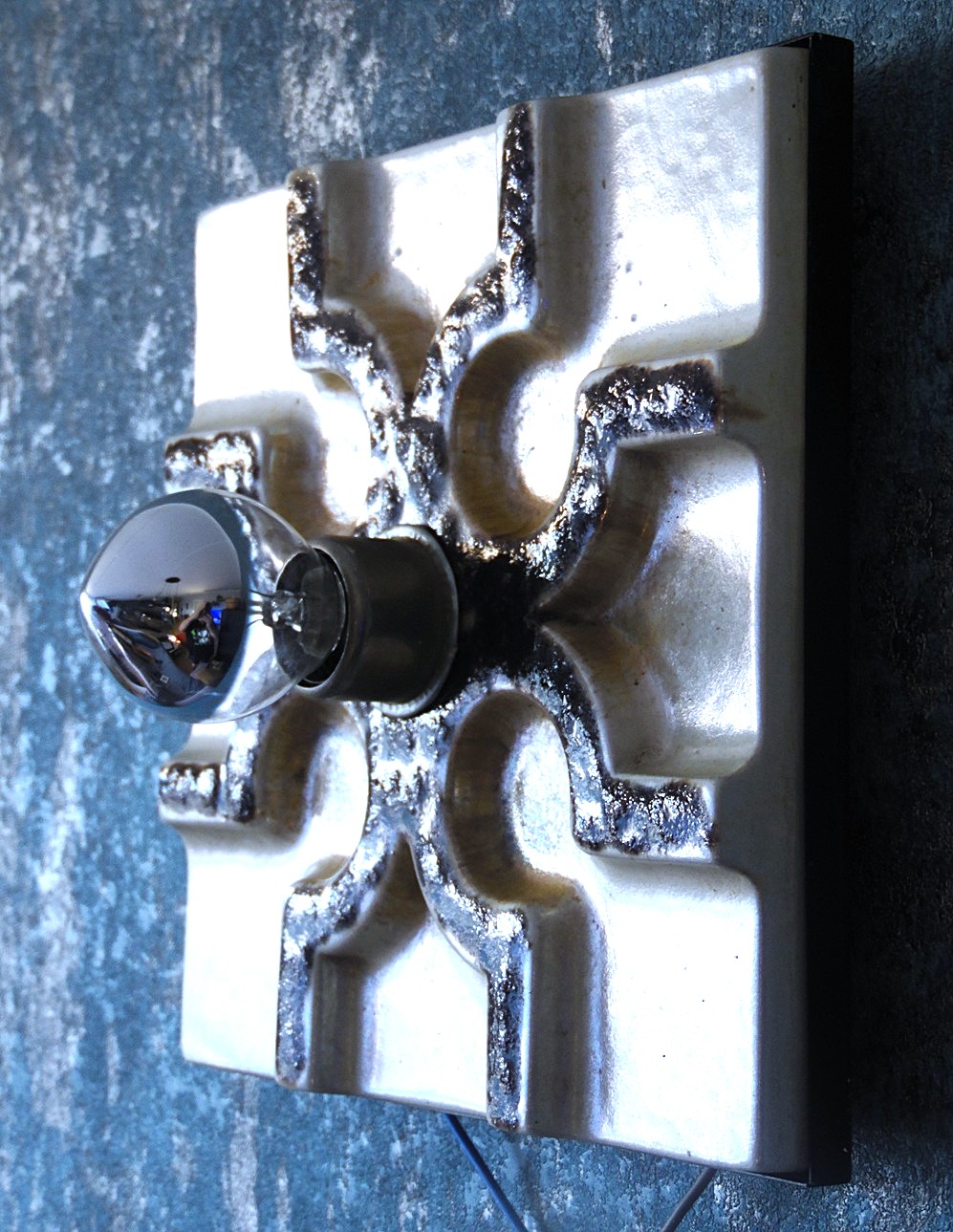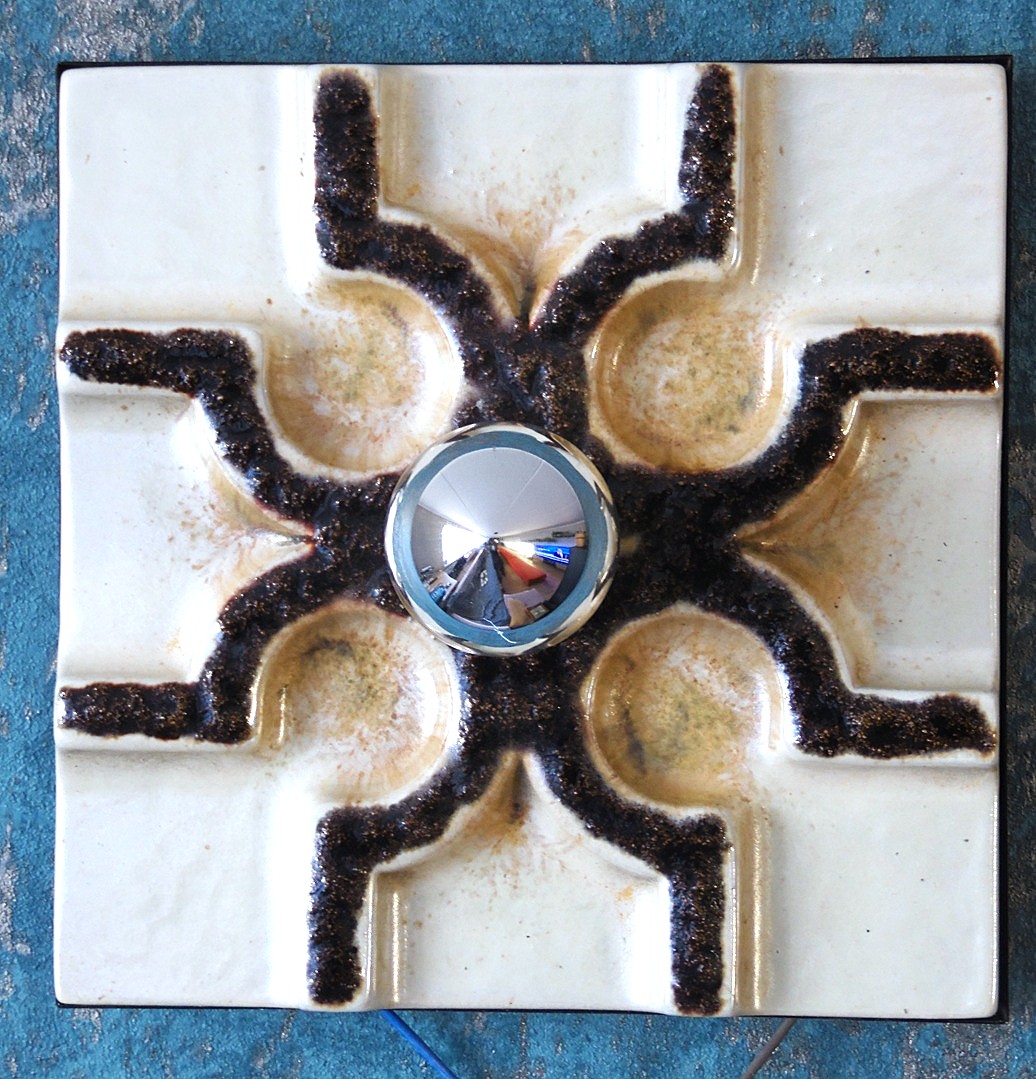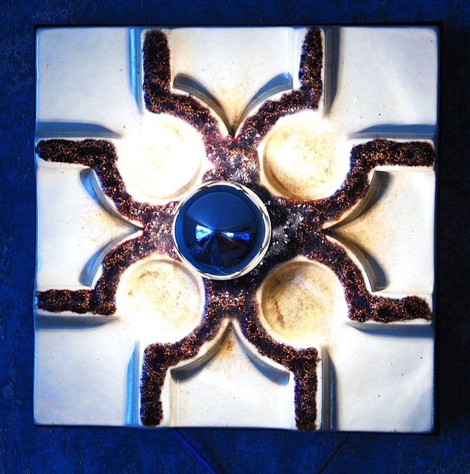 Vintage Mid-Century Space Age ceramic wall lamp from the 1960’s/70’s, manufactured by Century, made in Germany, size 20 cm x 20 cm, thickness of the ceramic part including the base 4 cm, very stylish and eye-catching lights, we have 2 from them in stock, bulbs also come with the lamp;