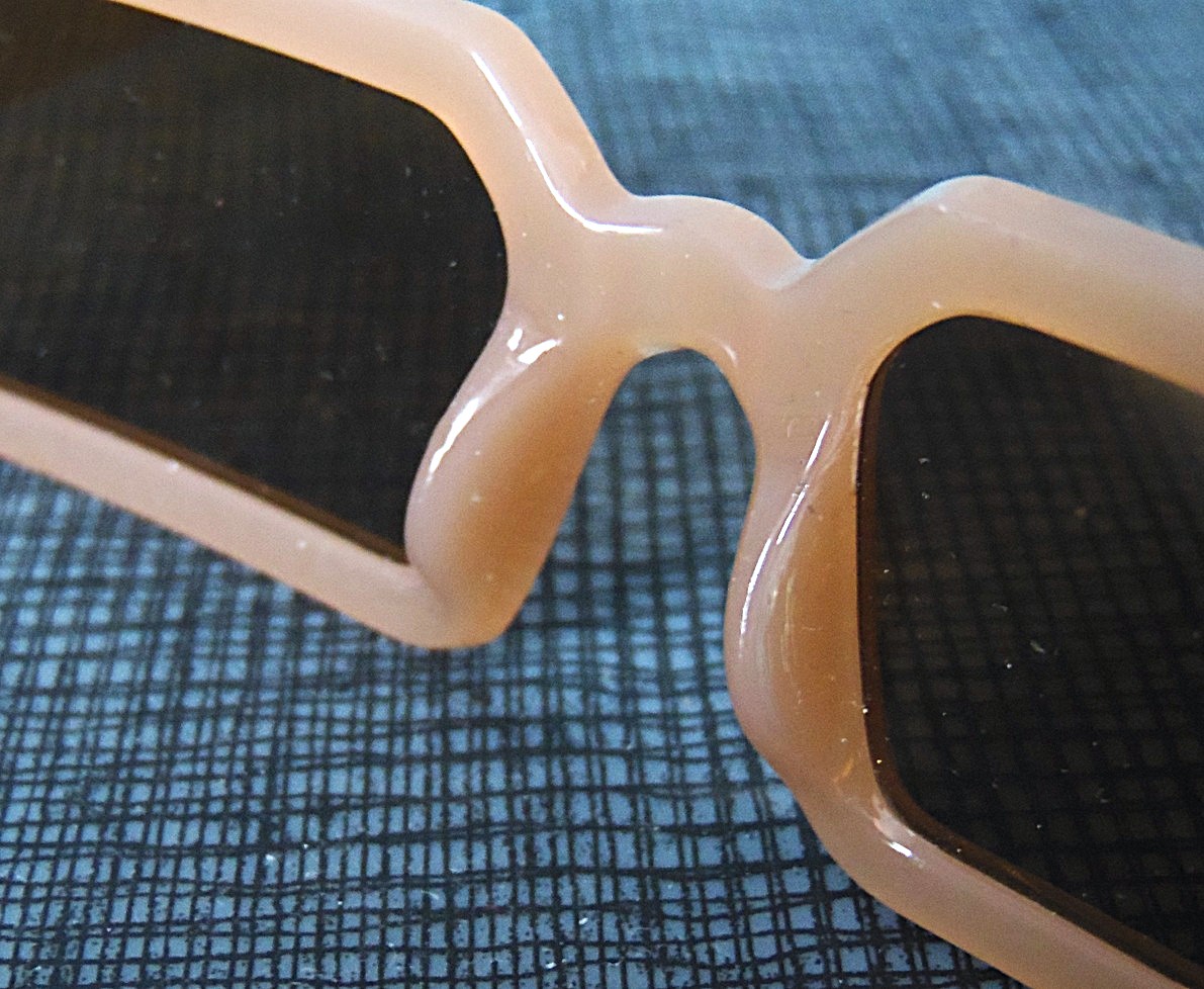 1960’el aastatel valmistatud Austria päritolu vintage-stiilis naiste päikeseprillid, raamid on valmistatud tugevast beezist plastist;