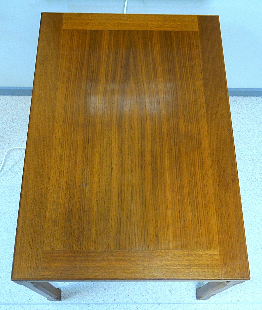 Vintage Skandinaavia disainiga pähklipuuspooniga kaetud väike konsoollaud, mõõdud: kõrgus 45,5 cm, laius 70 cm, sügavus 48 cm, heas vintage säilivuses, kuid esineb eelnevast kasutusest tulenevaid jälgi ja kulumist;