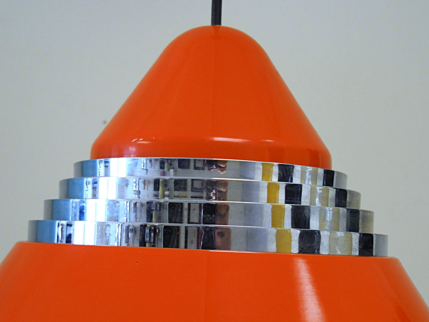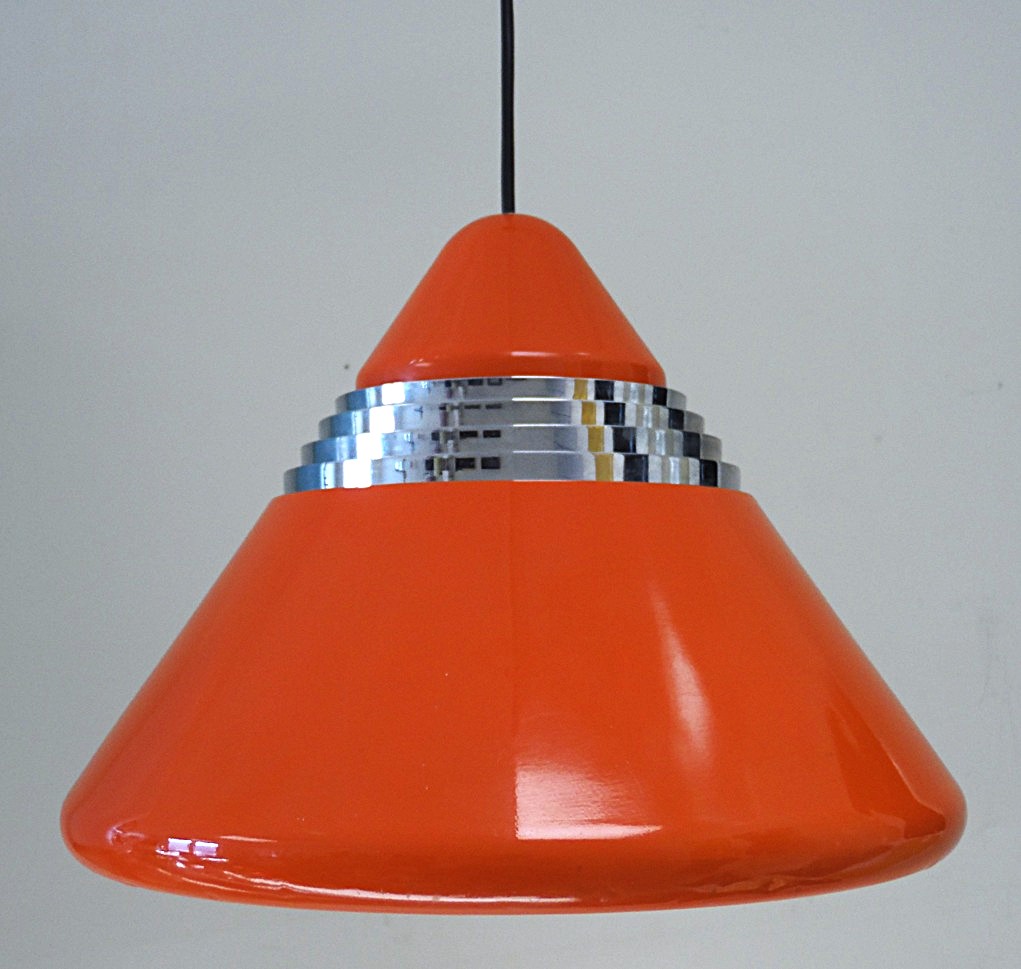 Vintage Space Age laelamp, disainitud Alfred Kalthoffi poolt Staff Leuchteni jaoks, toodetud 1960’el/70’el aastatel Lääne Saksamaal, värvus oranz/kroom, mõõdud: kupli läbimõõt 40 cm, kõrgus 30 cm, täiesti töökorras kuid esineb vanusest tulenevaid kriimustusi ja kasutusjälgi;