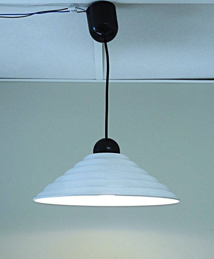Vintage Space Age laelamp “UFO”, kuppel metallist, värvus must/valge, kupli läbimõõt 31 cm, 1970’e/80’e aastate disain, valmistatud Prantsusmaal, täiesti töökorras kuid esineb vanusest tulenevaid kriimustusi ja kasutusjälgi;