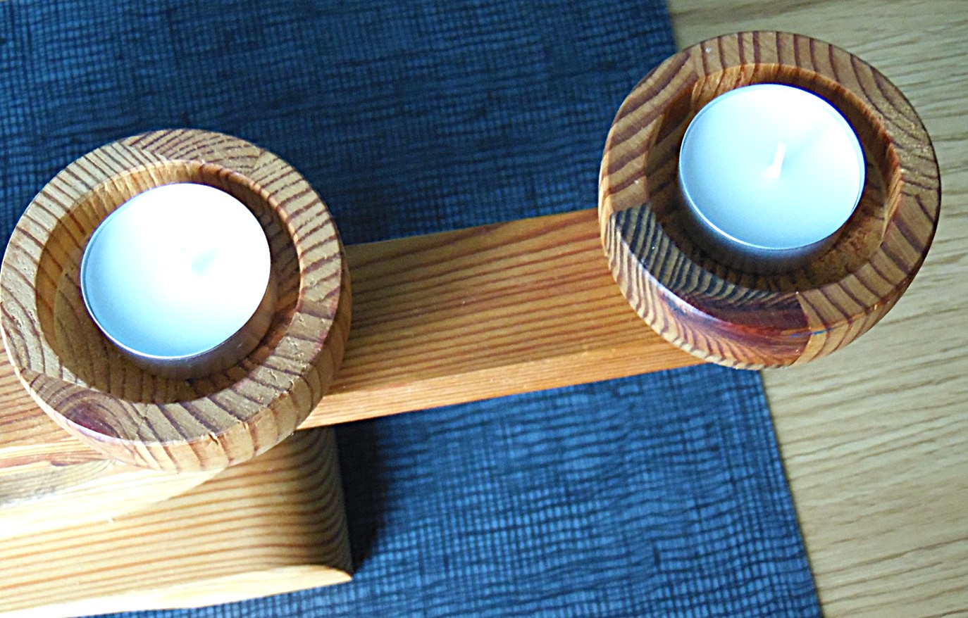 Vintage Stig Johnsson four-arm pine wood candelabra