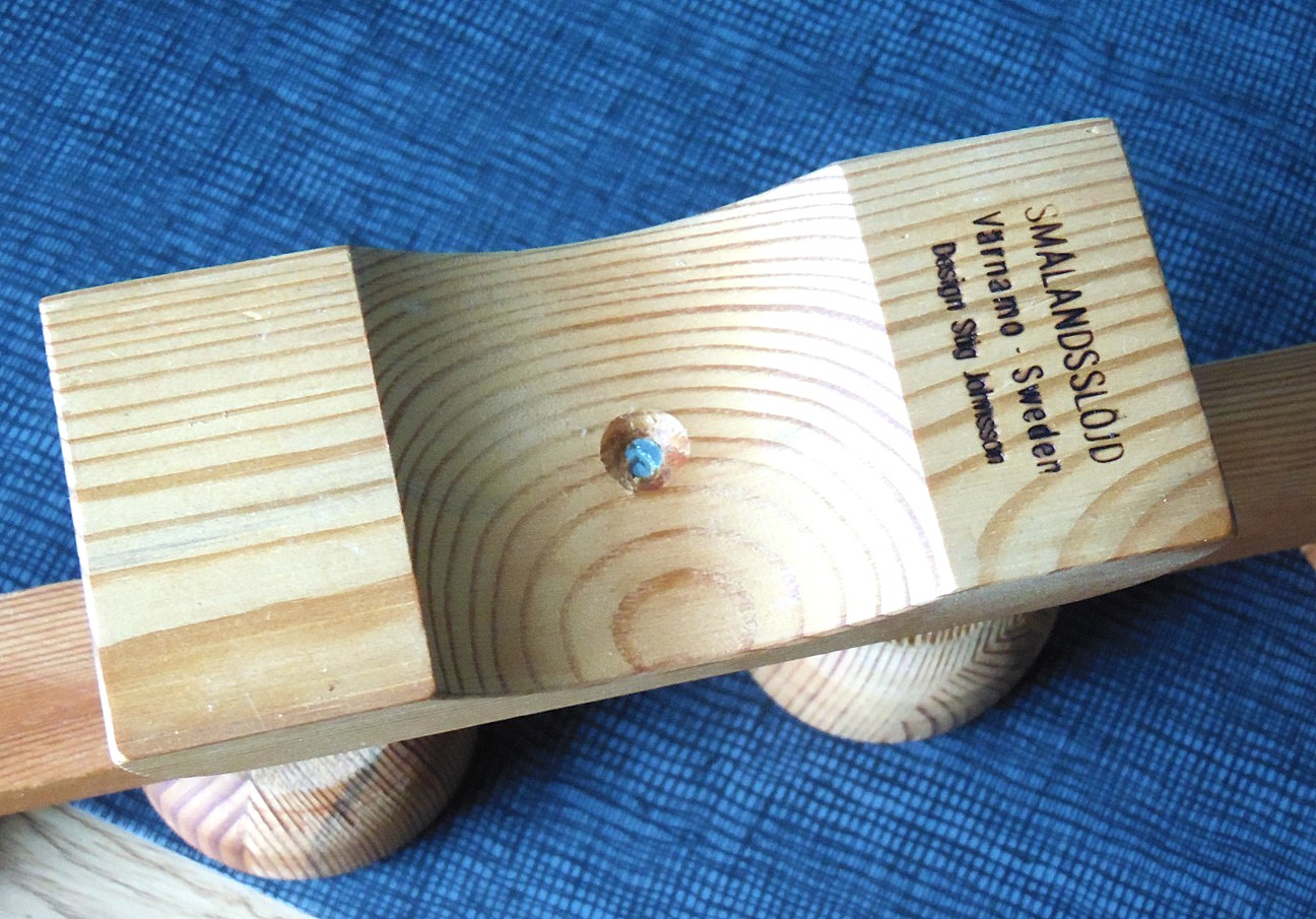 Rootsis Smålandsslöjdis valmistatud vintage Stig Johnssoni neljaharuline männipuidust küünlajalg. See on 1970’e aastate Põhjamaade keskpaiga disainiga, kõrgus 15 cm, laius 43 cm, sügavus 7 cm; Küünlad ei ole oksjoni osa ja ei tule ostuga kaasa!